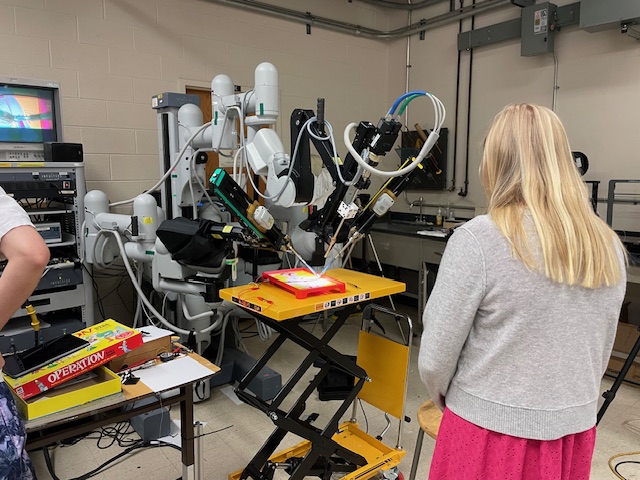 ERIE Lab teamed up with Saphari Lab to host the Bay STEM Academy for a third year. This time we significantly upped our game. Students got to try interacting with vibration-enhanced switch-adapted toys and commercial haptic feedback devices. They experienced virtual reality with eye tracking and even got to play a game of Operation using a telesurgical robot.